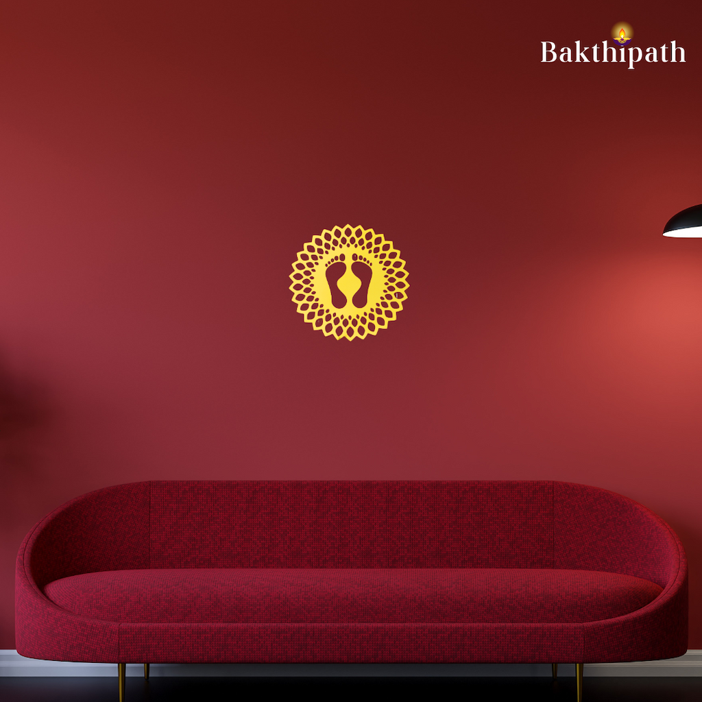 Golden Acrylic Lakshmi Paatham Sticker – for Cars, Interiors & Pooja Room Decor - 8"